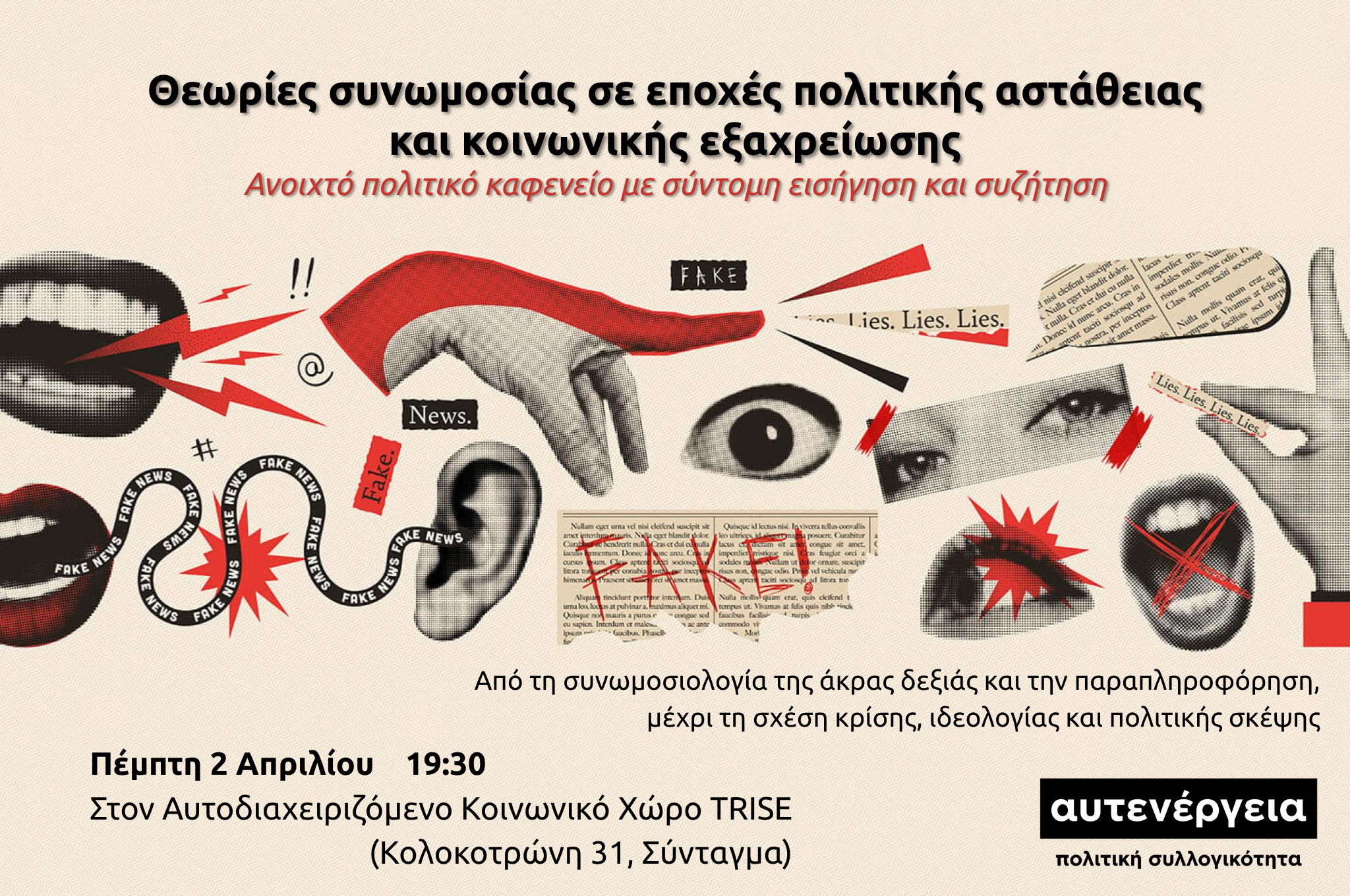 02/04: Πολιτικό καφενείο “Θεωρίες Συνωμοσίας σε εποχές πολιτικής αστάθειας & εξαχρείωσης”