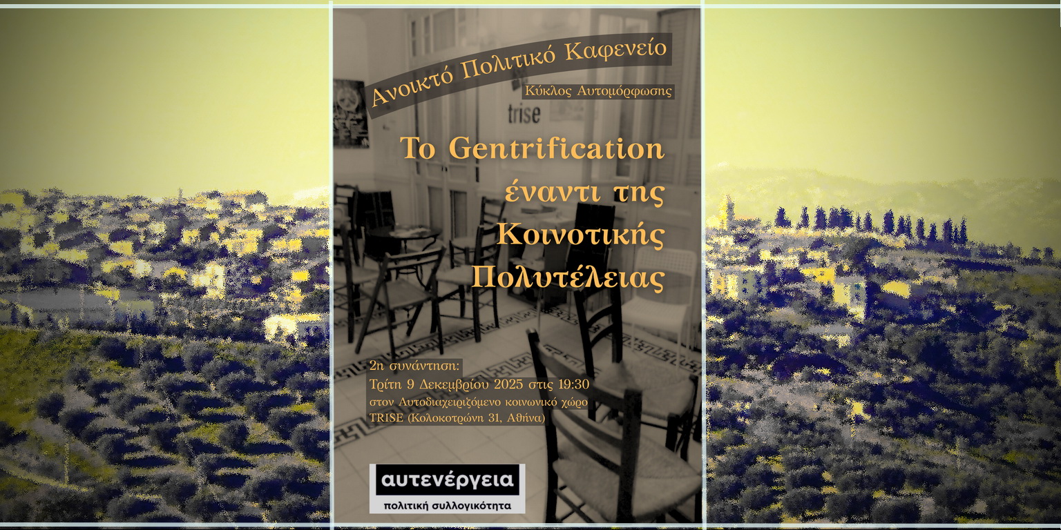 Πολιτικά καφενεία – 2η Συνάντηση 9/12: “Gentrification vs Κοινοτική Πολυτέλεια: Κινήματα πόλης & το δικαίωμα στον χώρο”
